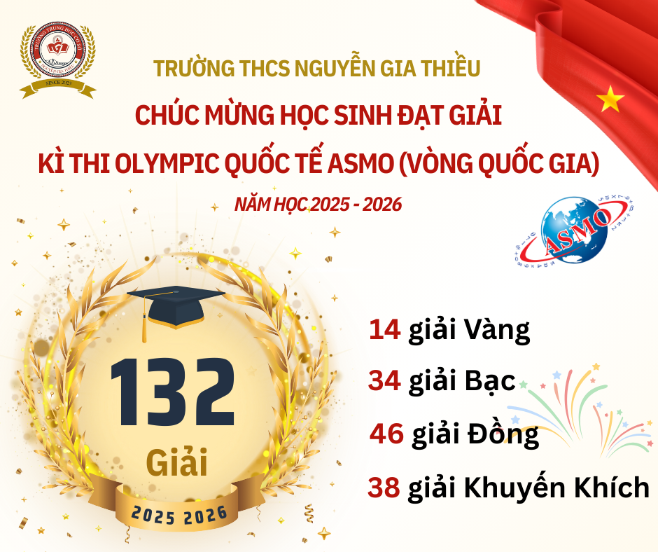 Trường THCS Nguyễn Gia Thiều vui mừng và tự hào chúc mừng các em học sinh đã đạt thành tích vượt trội tại vòng Quốc gia Kỳ thi Olympic Khoa học – Toán – Tiếng Anh ASMO 2025.